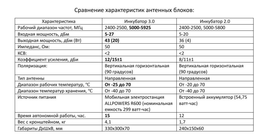 Сравнение характеристик антенных блоков: